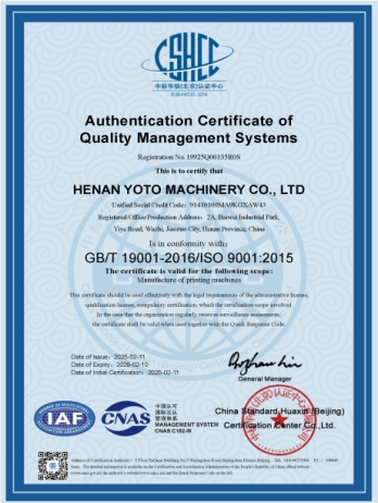 HENAN YOTO MACHINERY CO., LTD, a national High-Tech Enterprise, is based on innovative technology and product research and development, market demand-oriented, operation service-oriented support, providing customers with high-quality products and services. It has become a very competitive factory in the global fabric printing field and also established a good reputation in the industry.